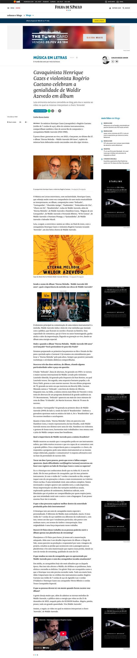 Cavaquinista Henrique Cazes e violonista Rogério Caetano celebram a genialidade de Waldir Azevedo em álbum